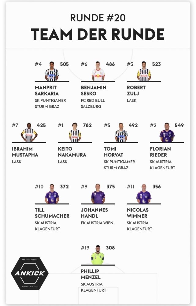 ラウンド20のベスト11、及びマンオブザマッチに選出されました!ベスト11は13度目の選出となります。