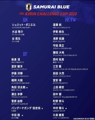 キリンチャレンジカップ日本代表メンバーに選出されました!中村敬斗からのコメント沢山の方々からお祝いのお言葉を頂きありがとうございます。年代別代表とは違うA代表の重みを半端なく感じてとても緊張しています。ラスクリンツの監督やスタッフ、チームメイトから祝福してもらいました。初の代表入りに緊張している私に、自信を持って行ってこいと激励してくれました。本当に嬉しいです。今は今週末19日のリーグ戦に勝つ事だ...